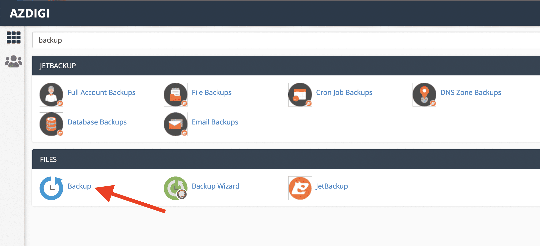 This is the simplest way we can get the database. First, we will access Backup feature as shown below: