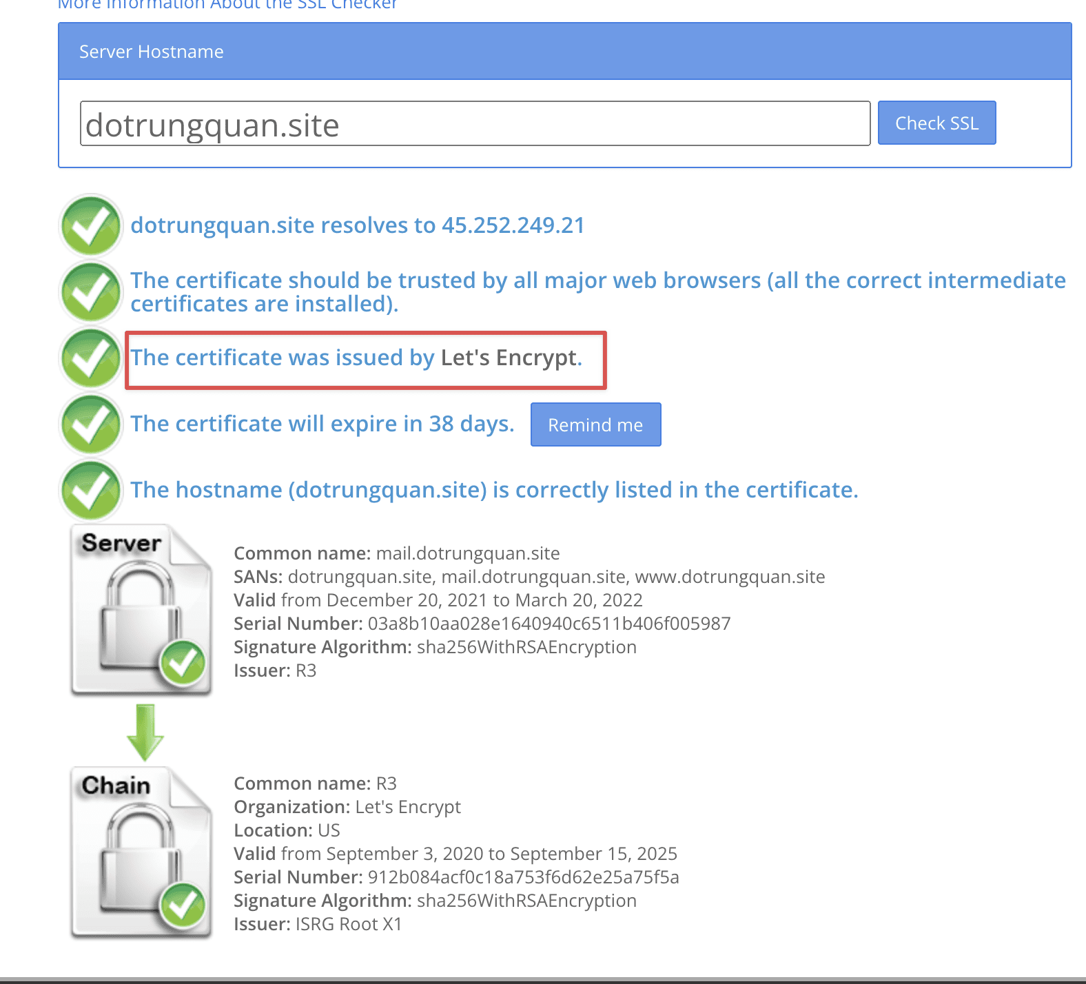 My website is dotrungquan.site using Let’s Encrypt SSL certificate checked at sslshopper