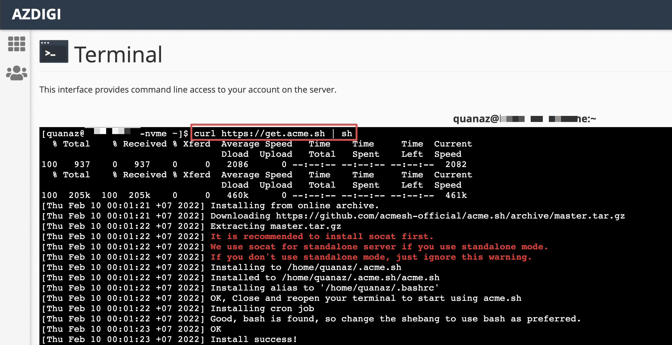 So AZDIGI has completed the steps to install ZeroSSL on cPanel. Thank you for following up here. Wishing you success!