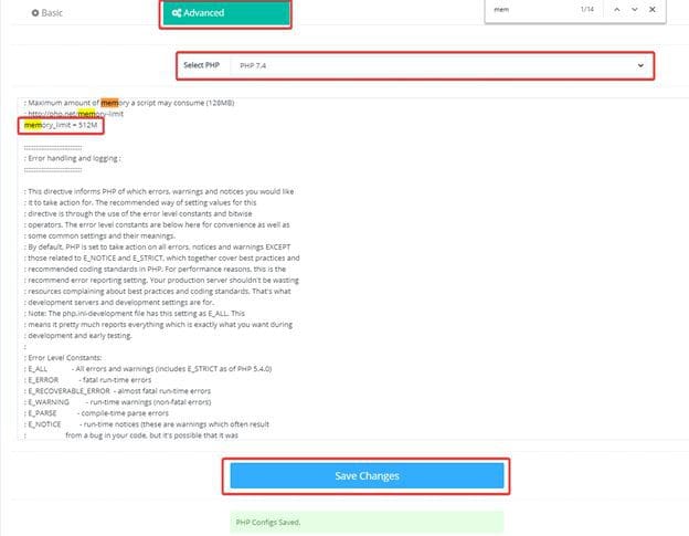 Select the Advanced tab => Find the parameters to be raised and enter new parameters (as shown) => select Save Changes to update the parameters.
