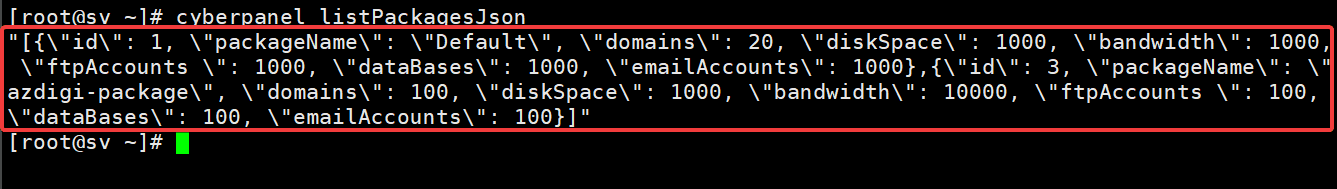 cyberpanel listPackagesJson