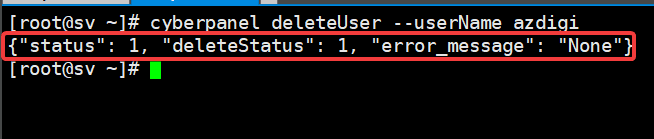 cyberpanel deleteUser --userName azdigi