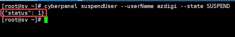 cyberpanel suspendUser --userName azdigi --state SUSPEND