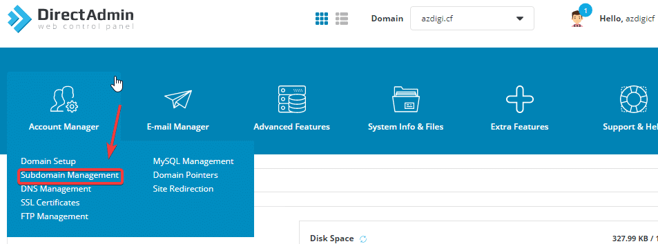2. Add SubDomain to DirectAdmin