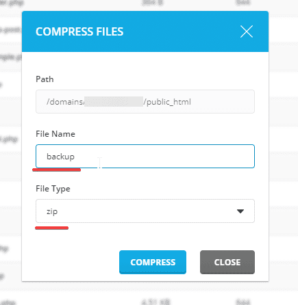 After creating the compressed file, you can proceed to download this file for backup or transfer it to another hosting.