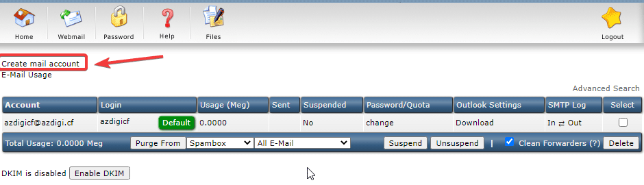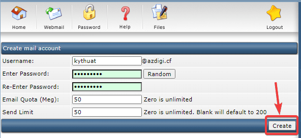 At the next interface, click Create mail account to create a new email.