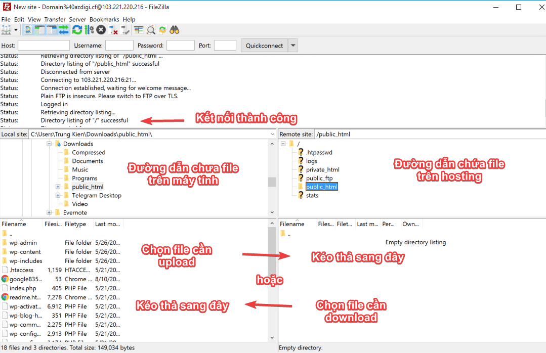 So AZDIGI has shown you how to successfully create an FTP account on DirectAdmin and connect FTP through FileZilla. Using FTP will help you in the process you need to move data from the computer to the host/VPS and vice versa easily.