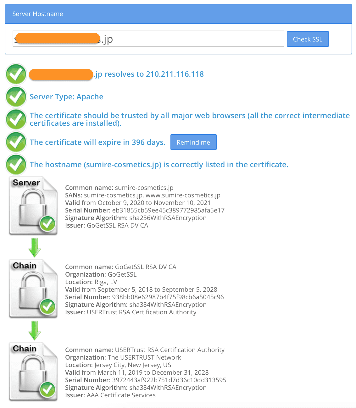 Wait for a few minutes and press F5 to reload the SSL details page, you will see the details of the SSL certificate.