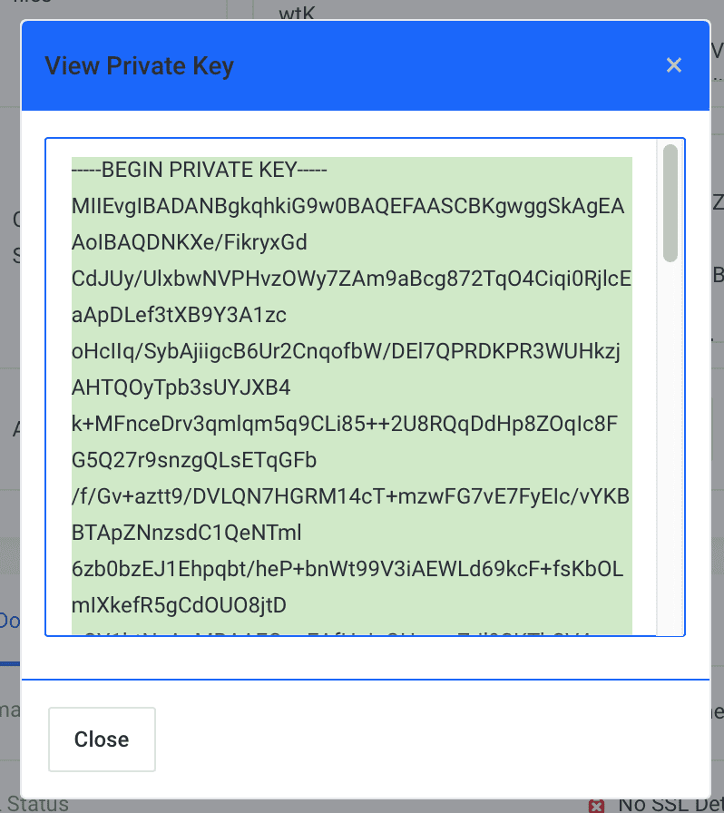 In the first box, you will enter the Private Key. You return to the SSL detailed interface and select Get Private Key to get the Private Key.