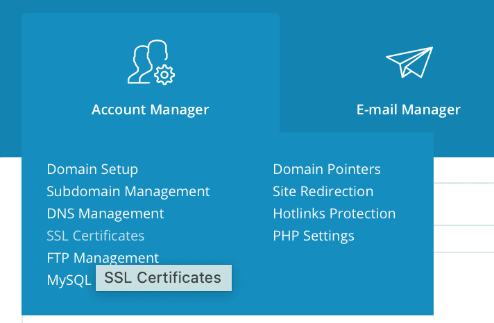 You return to the DirectAdmin interface and select SSL Certificates to enter the SSL installation interface.