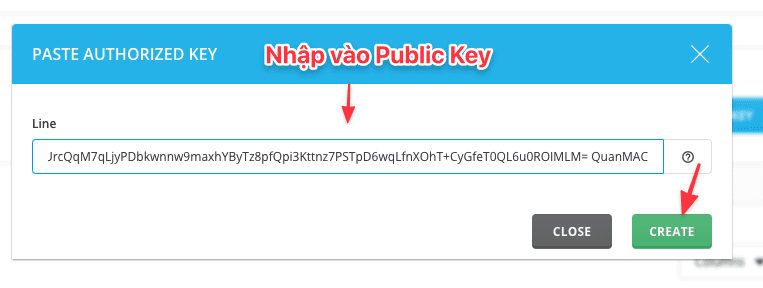 and copy the Public Key & paste it into this frame => click Create as shown below:
