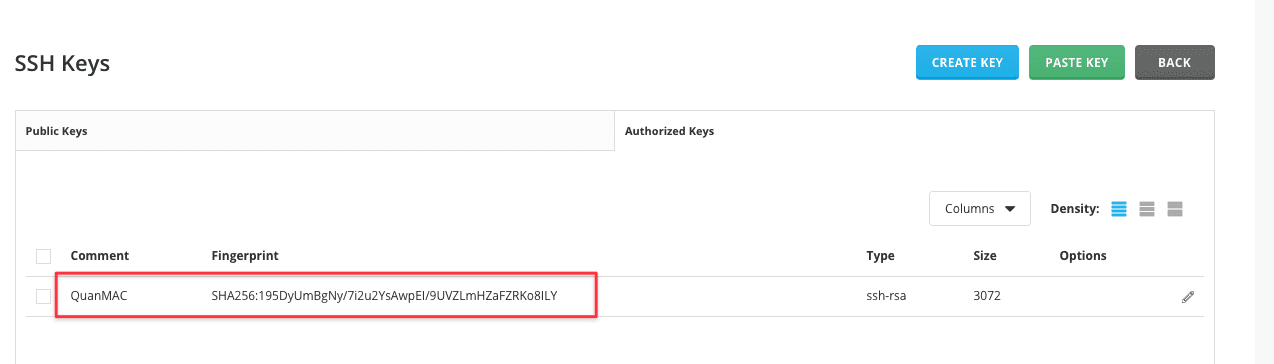 Move to the Authorized Keys Tab to check the imported Public Key.