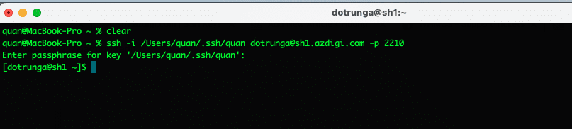 Actual example: ssh -i /Users/quan/.ssh/quan dotrunga@sh1.azdigi.com -p 2210