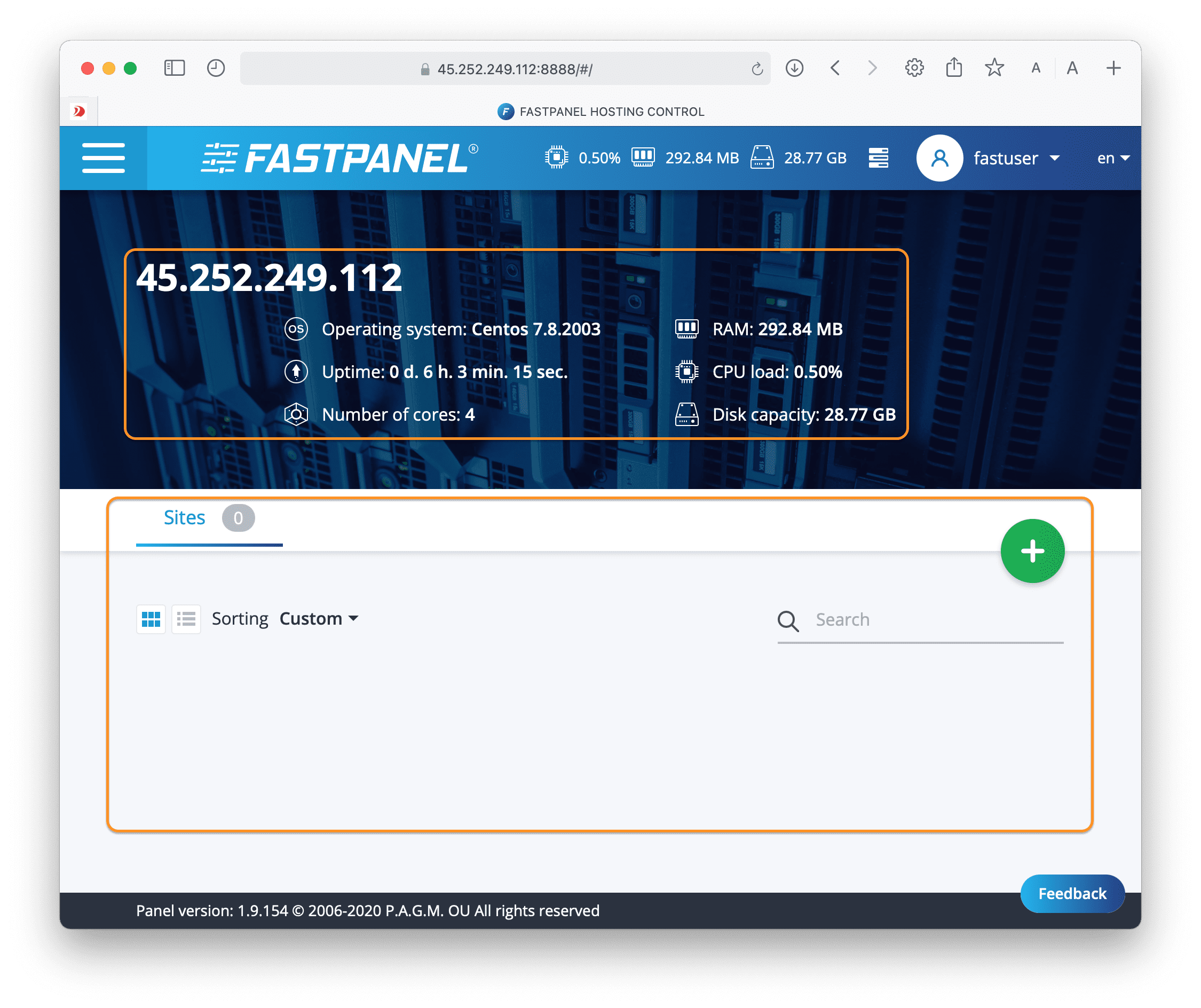 Below is my FASTPANEL interface: