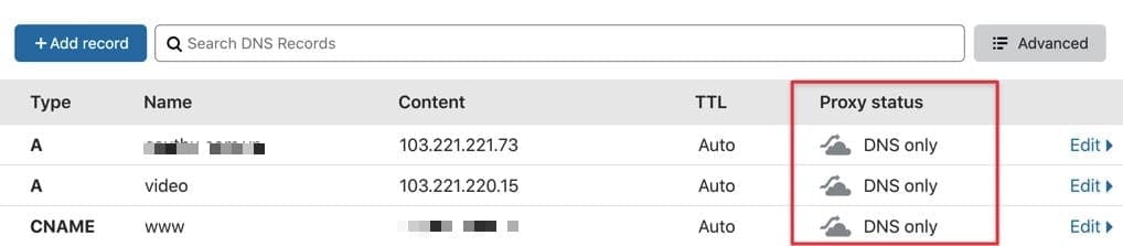 Therefore, if you are using CloudFlare services, it is recommended to disable the proxy feature and only use DNS, which will allow direct connections to the website.