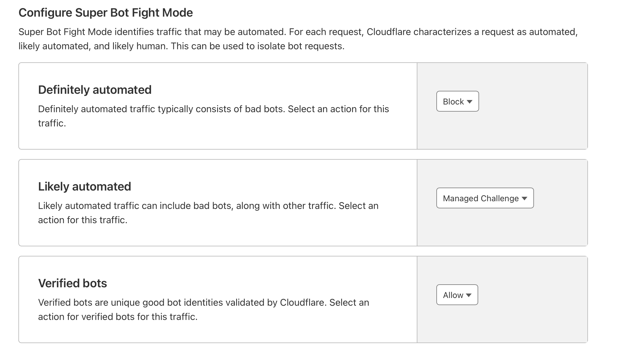 - Likely automated : Is a list of bots that CloudFlare believes are still automated but may be less common in danger.