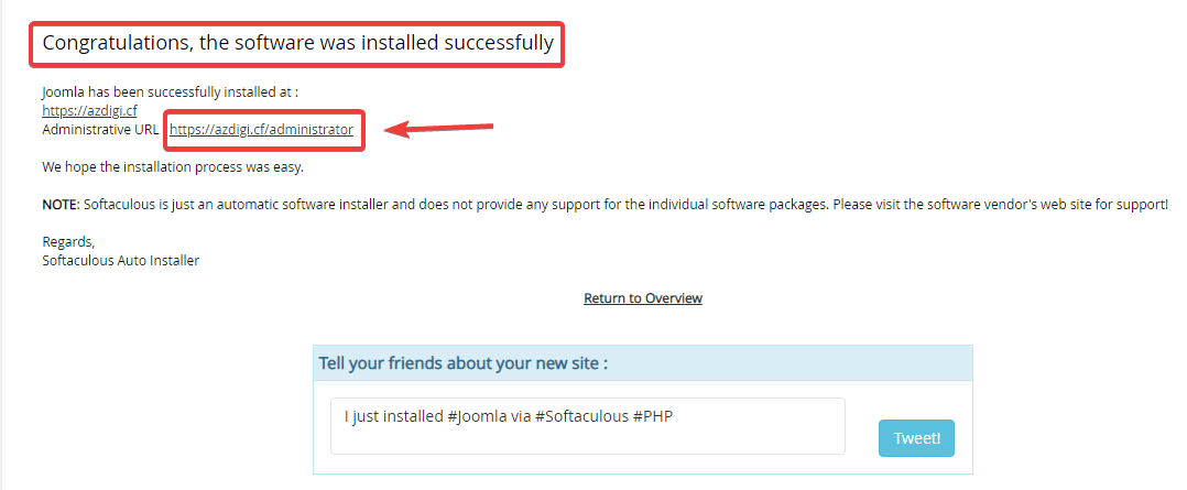 Thus, AZDIGI has shown you installing Joomla source code on a complete website through the Softaculous tool on cPanel. In the next articles, AZDIGI will guide you in more detail how to use the Joomla website. If you find the article helpful, please share it widely.