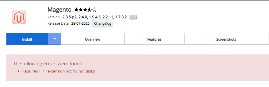 Before installing, you need to make sure that Extension Soap is active on the website, if you do not have this Extension, you will receive a warning when you install it as shown below: