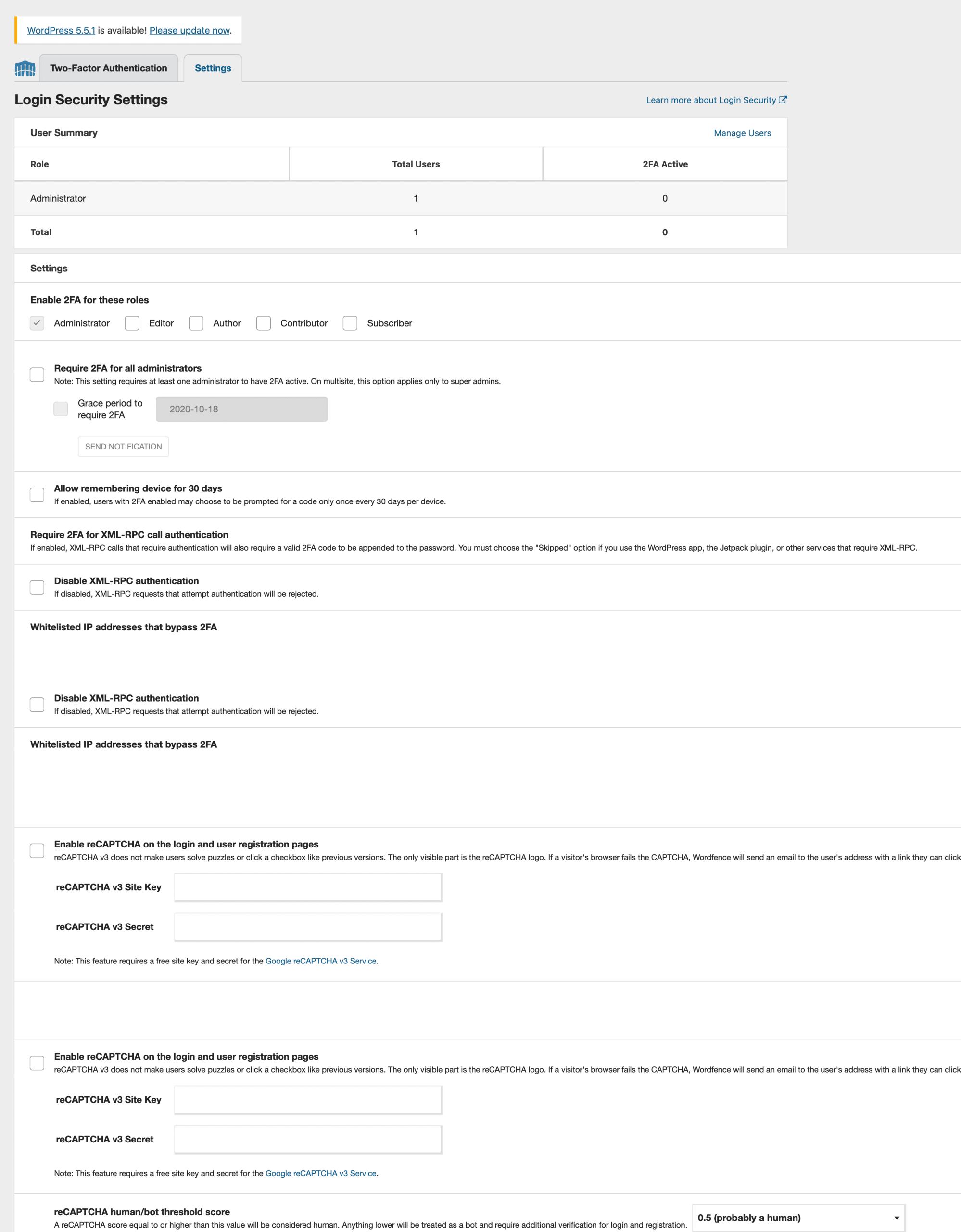 - Enable 2FA for these roles: Enable 2FA for authorized users, admin, editor, Author…