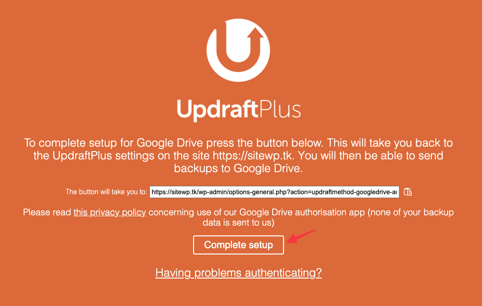 Connect UpdraftPlus to Google Drive