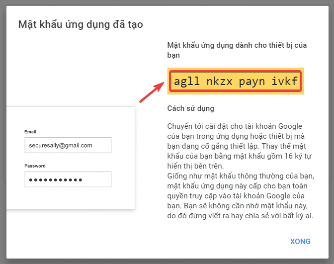 You will receive information like the image below. In the yellow box, you will see characters, this is your application password. Please save this password.