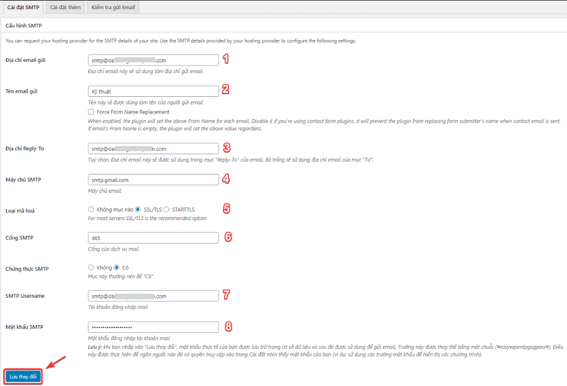- Máy chủ SMTP: Enter smtp.gmail.com