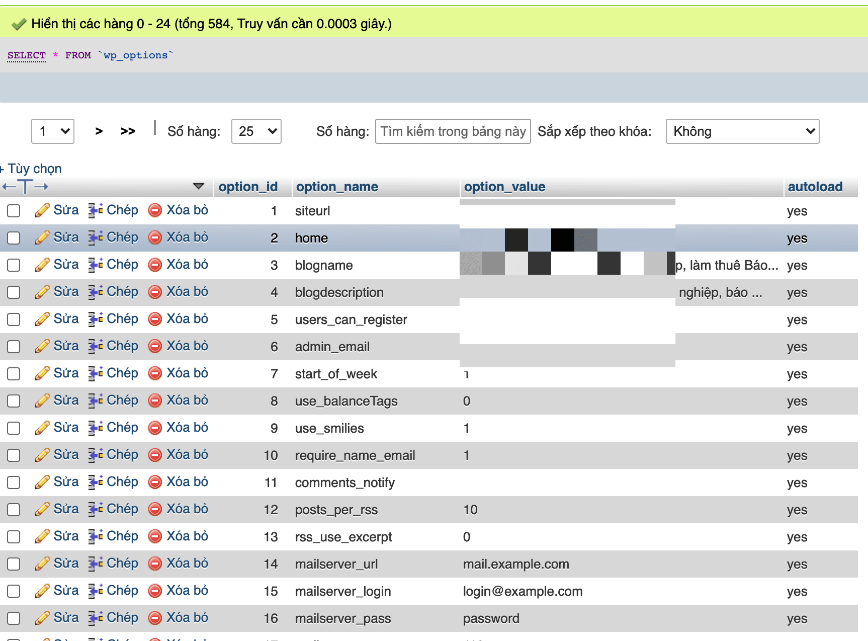 I have an error on wp_option table in this article, so I will guide you with this table. With other tables, do the same.